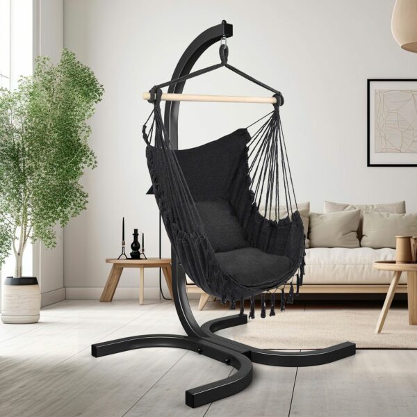 La struttura in metallo resistente alle intemperie, antigraffio e durevole sfida vento e pioggia. La forma elegante a C garantisce movimenti dolci e un supporto ottimale – perfetta per la tua amaca con supporto, sia per esterni che per interni.Flessibile & leggera